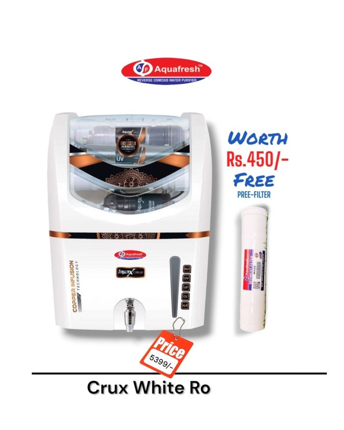 Crux White Copper Ro Water Purifier | Pro Series | One year Warranty on RO Pump and Electric Power Supply | Consumables are chargeable | Free Installation worth Rs.549 and Two Times Free Home Service Visits (250×2=Rs.500 Free)