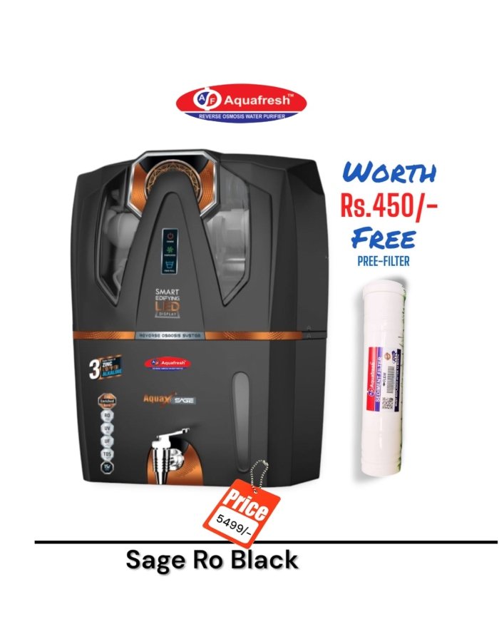 The Sage Black RO Water Purifier is designed to provide your household with safe and healthy drinking water. Utilizing a multi-stage purification process, including RO, UV, UF, and TDS adjustment, it effectively removes impurities, bacteria, and viruses. The built-in mineral cartridge ensures the retention of essential minerals, enhancing the taste and quality of the water. With a 12-liter storage tank and a purification capacity of up to 15 liters per hour, it caters to the daily needs of a medium-sized family. Its sleek design allows for easy wall-mount or table-top installation, making it a versatile addition to any kitchen.