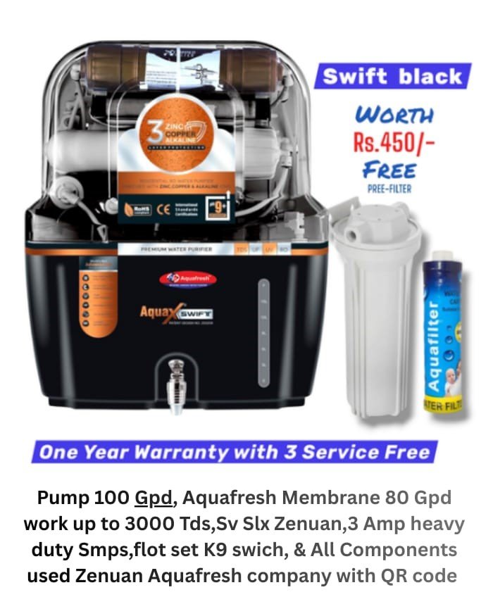 Swift Black Copper Ro Water Purifier | One year Warranty on RO Pump and Electric Power Supply | Consumables are chargeable | Free Installation worth Rs.549 and Three Times Free Home Service Visits (250×3=Rs.750 Free)