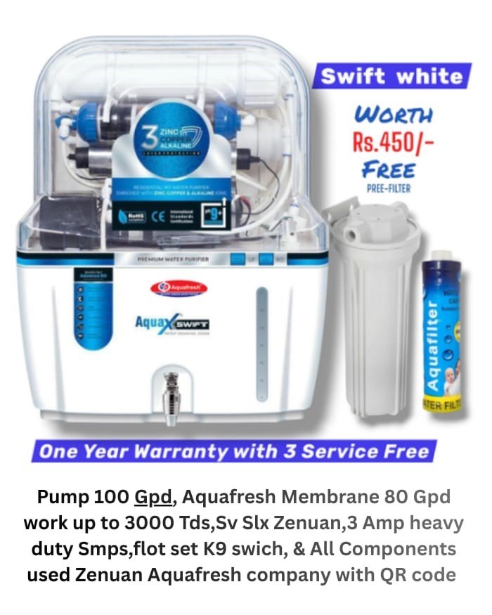 Swift White Copper Ro Water Purifier | One year Warranty on RO Pump and Electric Power Supply | Consumables are chargeable | Free Installation worth Rs.549 and Three Times Free Home Service Visits (250×3=Rs.750 Free) (Copy)